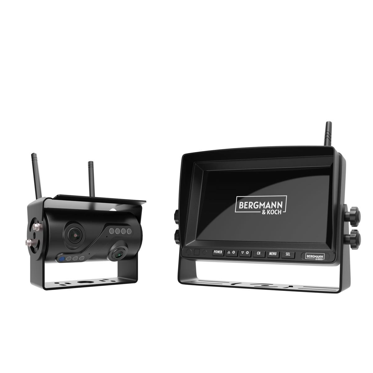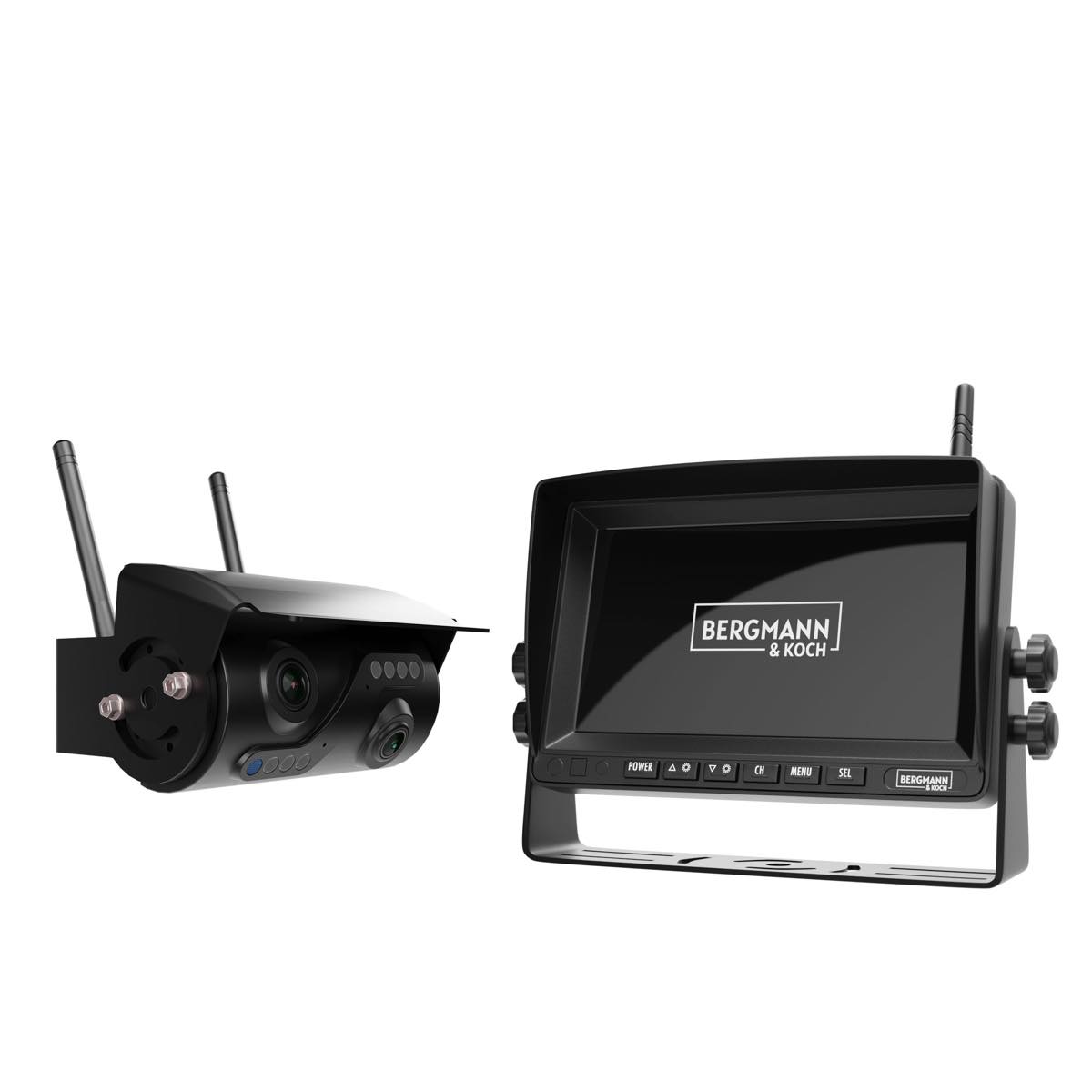 – Komplettes 7″ Funk Doppelaugen Rückfahrkamera System mit Personerkennung