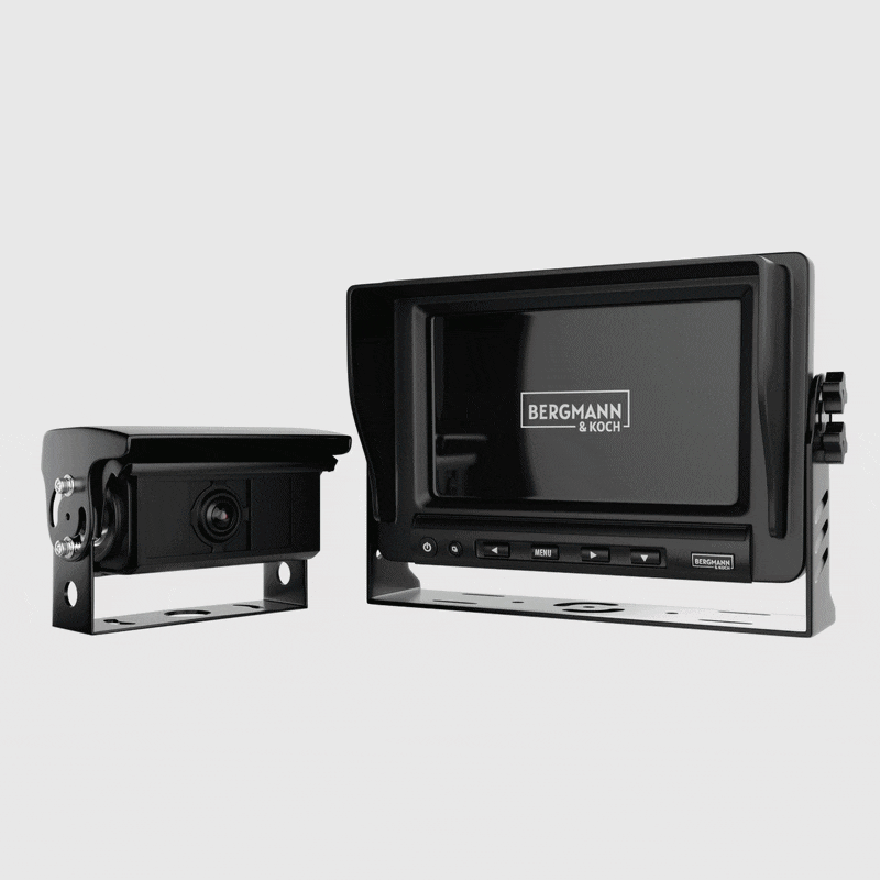 Das Bergmann & Koch BKS17 Shutter Kamerasystem aus der EXPERT Serie ist ein modernes Rückfahrkamera-System mit KI-Personenerkennung für Nutzfahrzeuge und professionelle Anwendungen. Das System erkennt automatisch Personen und Hindernisse hinter dem Fahrzeug und zeigt zusätzlich eine Distanzanzeige zu Personen und Gegenständen direkt im Monitorbild an. Dadurch kann der Fahrer Gefahren schneller erkennen und sicherer manövrieren. Der Warnung erfolgt optisch und akustisch. Beide Funktionen lassen sich bei Bedarf jederzeit deaktivieren.